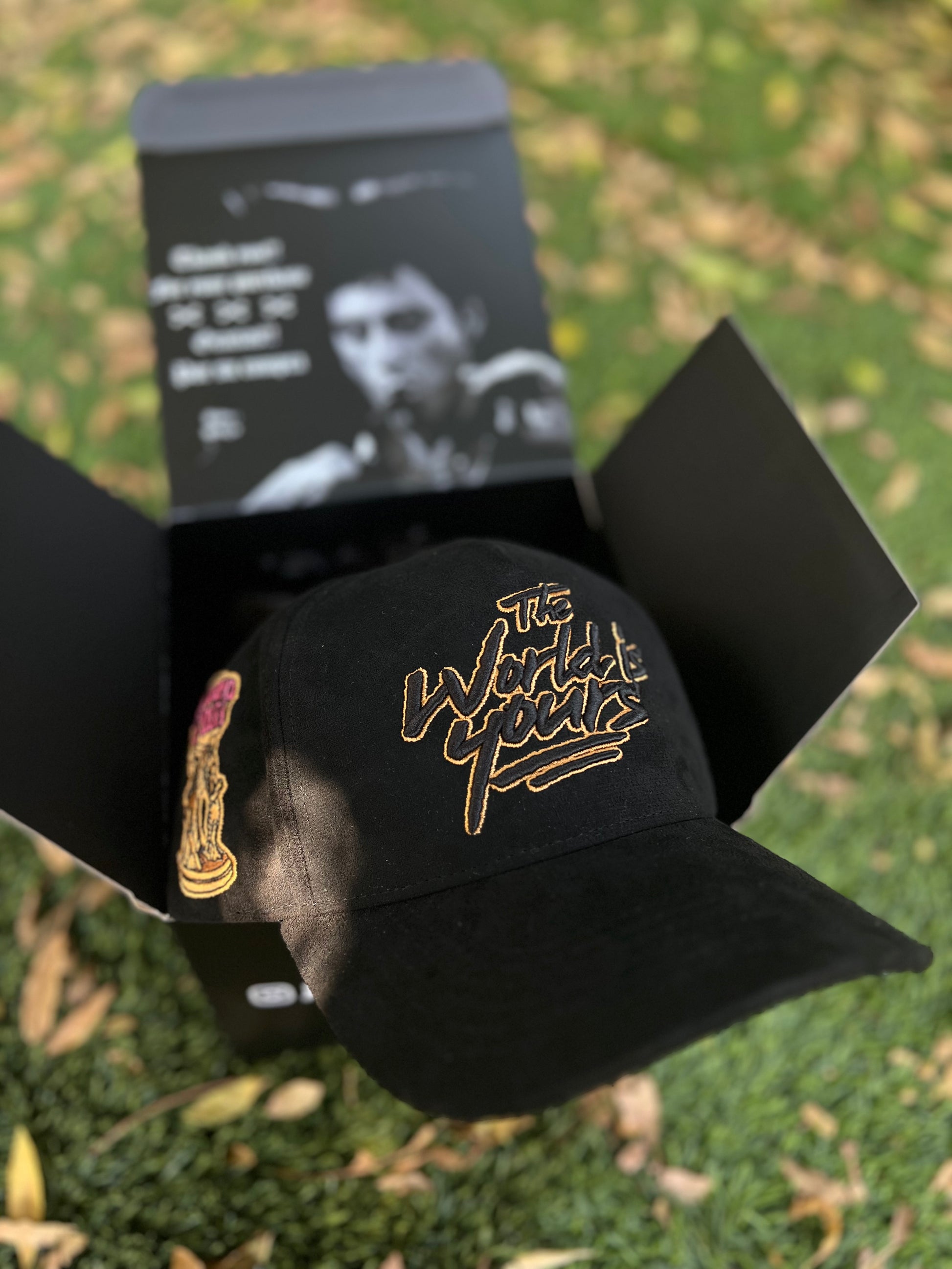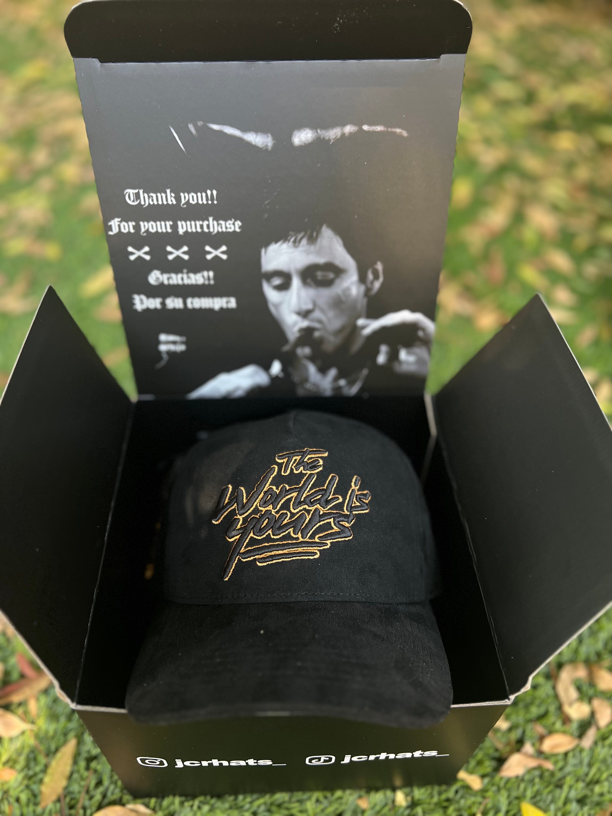 Front: JCR HATS signature (The World Is Yours) embroidery